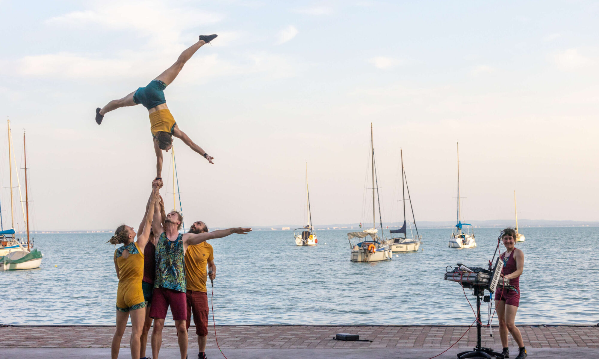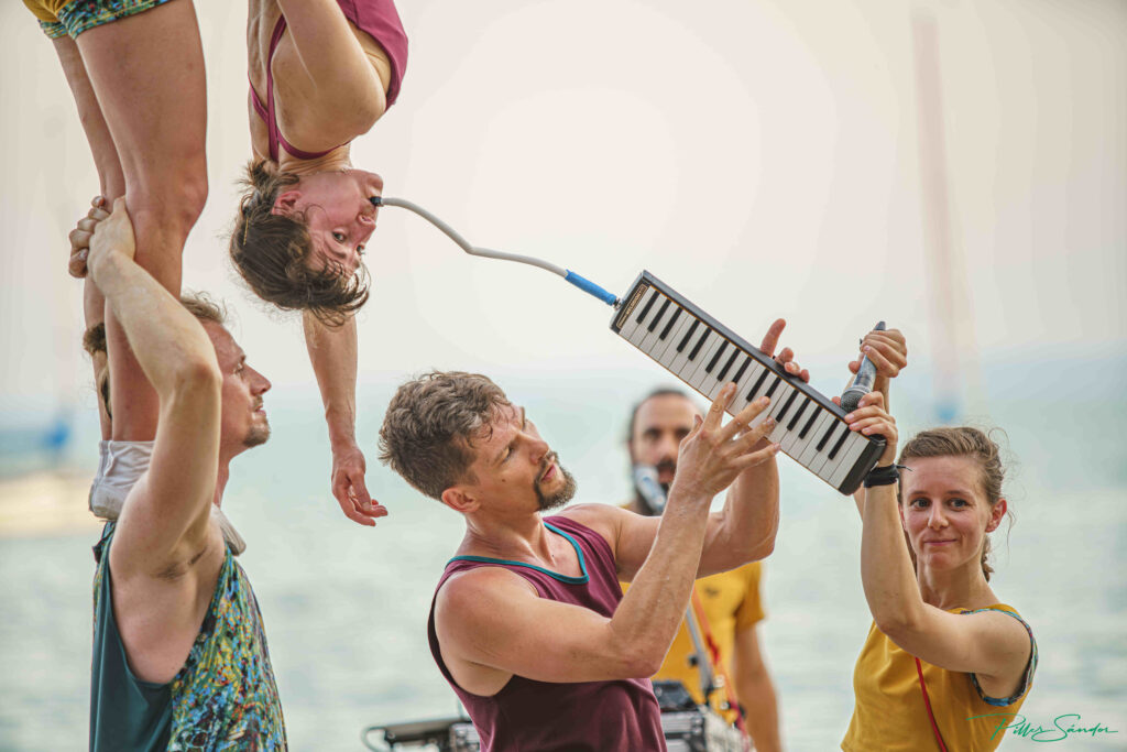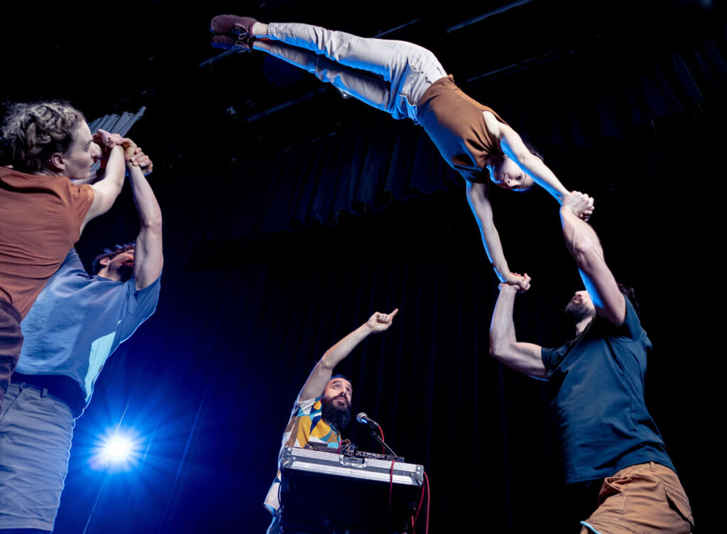 ConTakt is an acrobatic collective of six performers and a production manager, spread across three countries, working collaboratively despite the distance. Founded in 2020, they shape their work through shared artistic decisions and residencies with invited outside eyes, blending contemporary circus, physical theatre, and live music from within the ensemble.